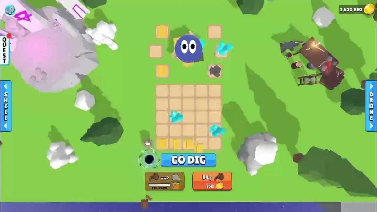 The deeper you go, the more challenges you face. You’ll encounter tougher terrain and harder-to-break obstacles, which require you to craft increasingly sophisticated tools. Strategic thinking is essential as you must carefully choose which resources to merge and which upgrades to prioritize. The progression system is rewarding, with new surprises and upgrades around every corner.