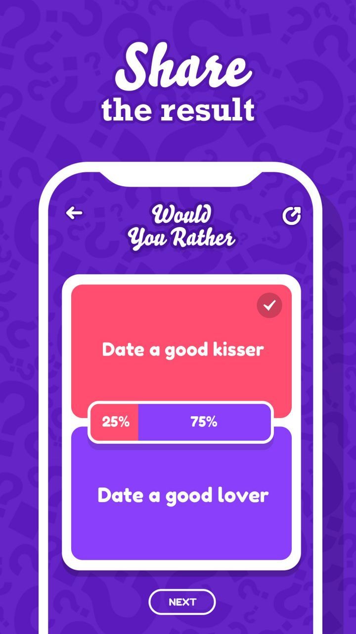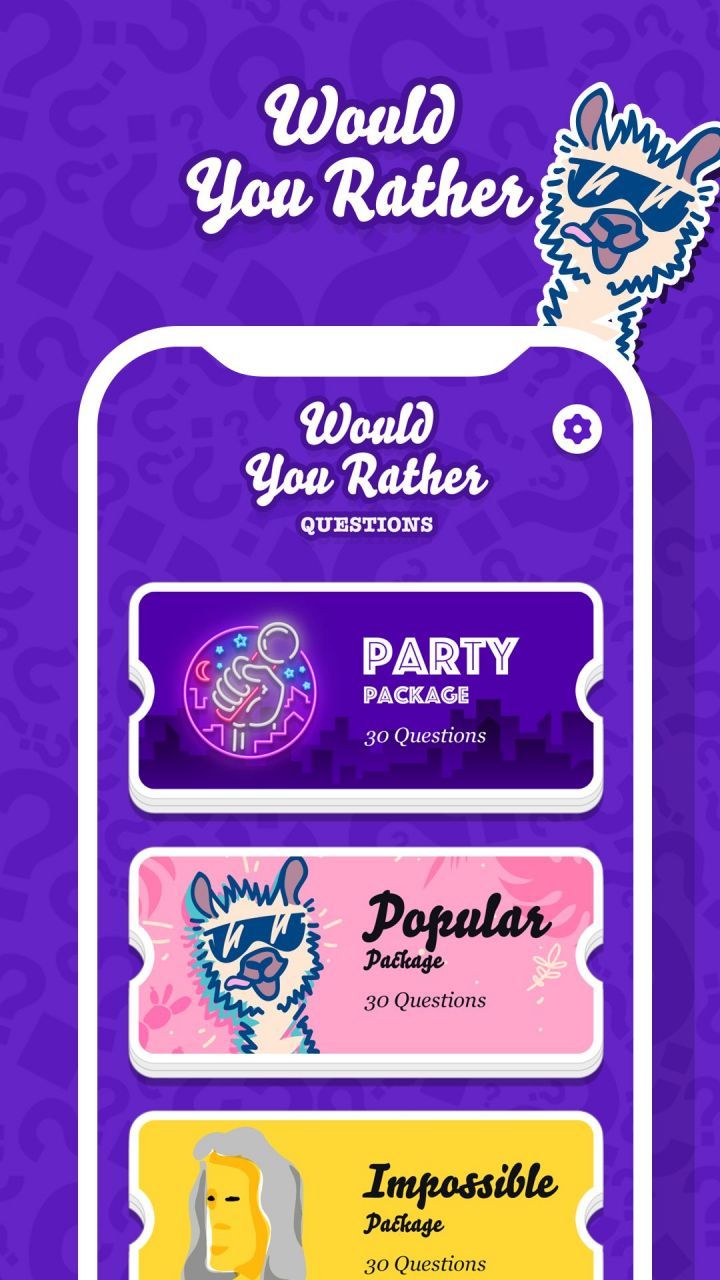 Would You Rather? offers multiple levels of gameplay, allowing players to customize their experience based on their preferences and the dynamics of the group. Beginners can start with the "Classic" level, which features lighthearted dilemmas and straightforward choices. This level is ideal for younger players or groups looking for a casual and fun experience. For those seeking a more challenging and thought-provoking game, the "Deep Dilemmas" level presents complex scenarios that delve into moral, philosophical, or ethical dilemmas, prompting players to delve deeper into their values and beliefs.Furthermore, Would You Rather? embraces creativity and encourages players to create their own levels and dilemmas. With the "Custom" level, players can unleash their imaginations and tailor the game to suit their specific interests or inside jokes. This feature adds a personal touch to the gameplay, fostering a sense of ownership and making each session unique and memorable.